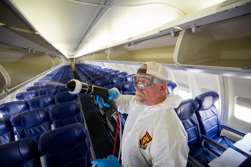 Crédit photo : Southwest Airlines teste un nouveau procédé de nettoyage lors de l’épidémie de Coronavirus. Stephen M. Keller / Southwest Airlines