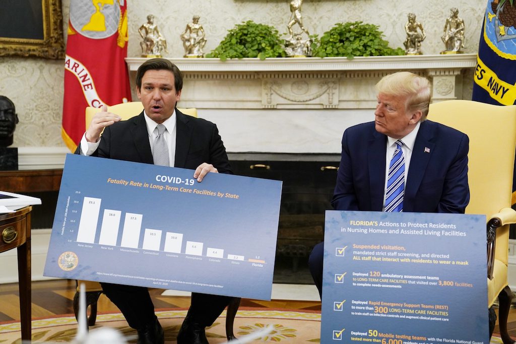 La Floride, qui compte une forte population d’Américains âgés vulnérables à la maladie, a longtemps été une source de préoccupation, et DeSantis a été plus lent à imposer des directives de distanciation sociale que les autres gouverneurs. Mais DeSantis, un autre républicain et proche allié de Trump, a promu la capacité de son État à tester ses résidents.