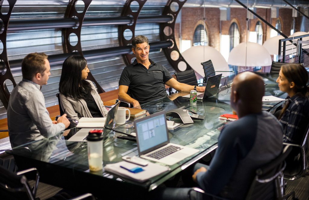 Crédit photo : Cette photo de fichier montre le PDG de Kayak et d’OpenTable, Steve Hafner, avec les membres de son équipe. Hafner a informé les employés des mises à pied et des congés du 29 avril 2020 qui découlent de la pandémie de coronavirus. Jesse Neider